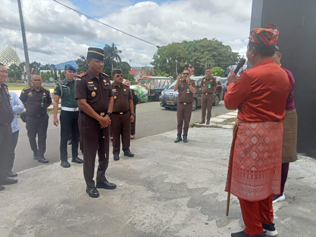 Kedatangan rombongan Kajati disambut hangat oleh Kepala Kejaksaan Negeri Kotamobagu, Saptono, S.H., beserta jajaran. Prosesi penyambutan kental dengan nuansa budaya lokal melalui tradisi adat Bolaang Mongondow, yakni tarian Tuitan dan Itum-itum.